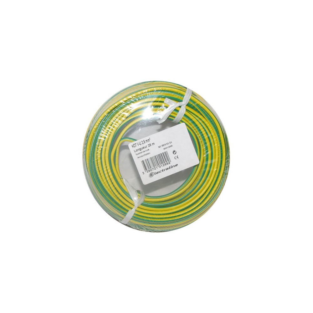 Le câble rigide H07V-U 1x2,5 mm² jaune/vert d'Electraline est le conducteur de terre de référence pour toute installation électrique sécurisée. Conditionné en couronne de 10 mètres, ce bobinot compact est pratique à stocker et à utiliser pour des travaux de mise à la terre dans des logements, des bureaux ou pour le câblage d'armoires électriques.