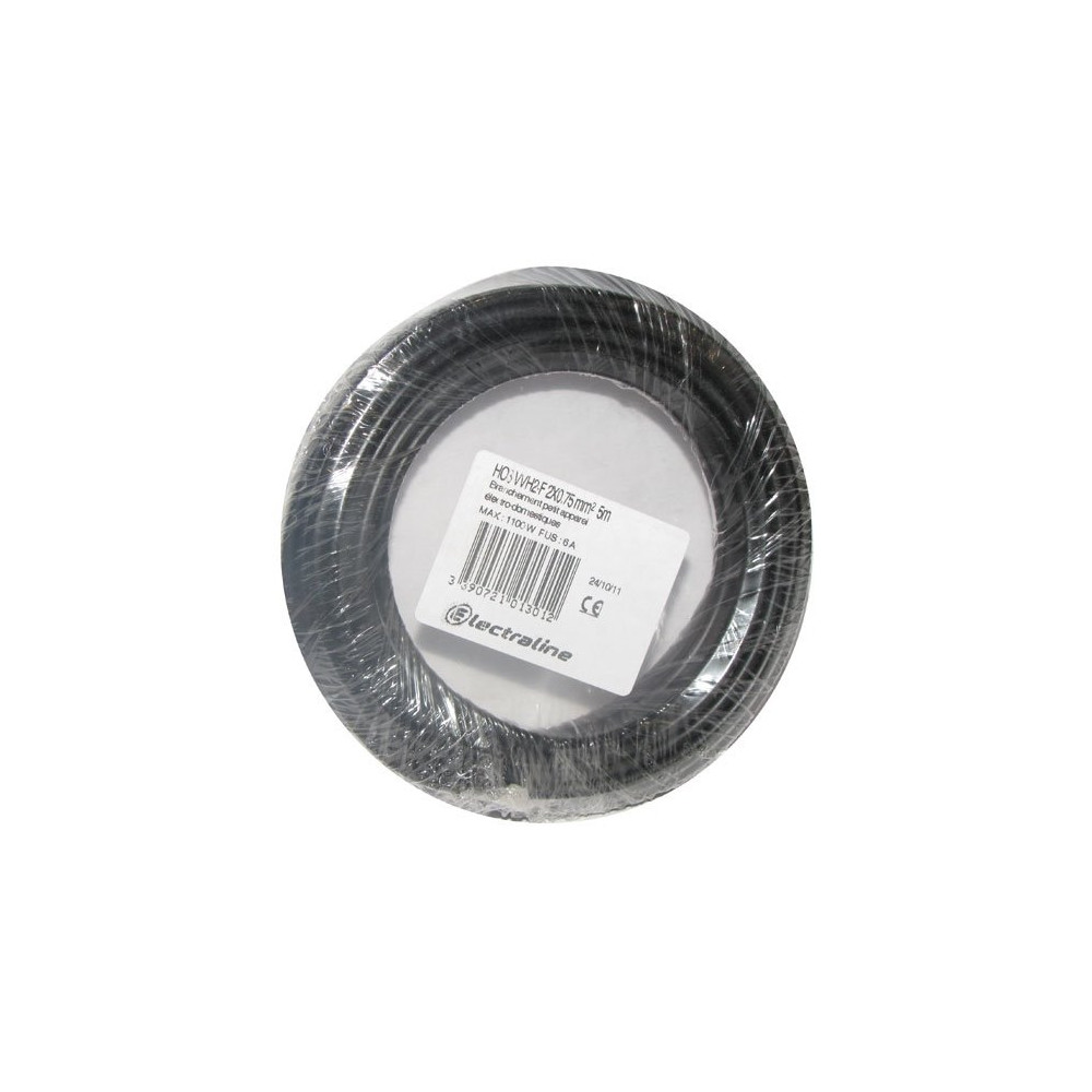 Pour les projets nécessitant une plus grande longueur de câble, le câble H03VVH2F 2x0,75 mm² noir en couronne de 10 mètres d'Electraline offre la souplesse nécessaire pour des installations plus importantes ou des passages de câbles sur de plus grandes distances. Sa gaine noire garantit une intégration discrète dans tous les environnements sombres ou contemporains.
