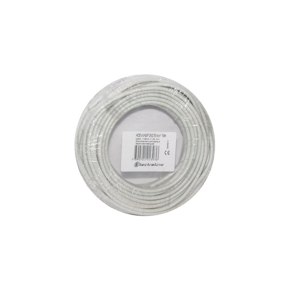 ELECTRALINE - Câble H03VVH2F 2x0.75 10m blanc couronne