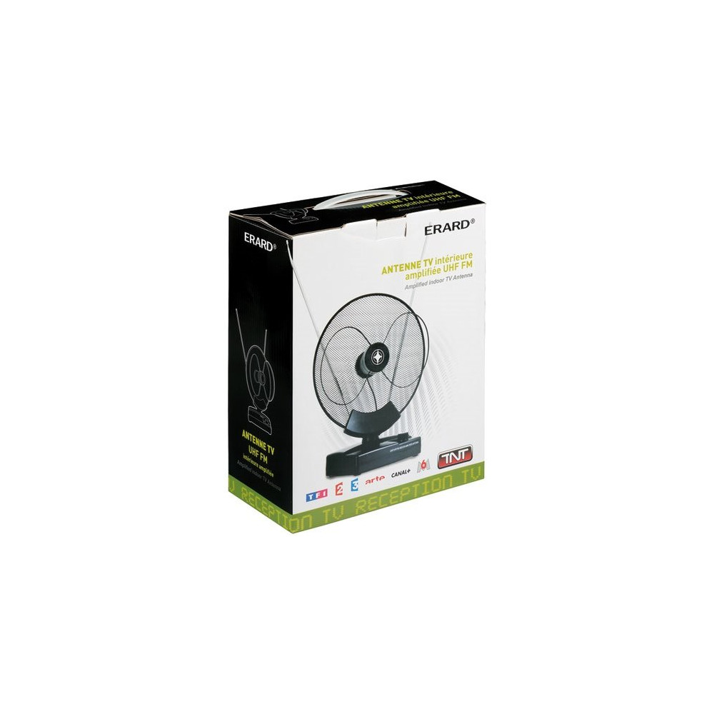 724202 - L'antenne TV-TNT d'intérieure parabolique de chez Erard reçoit les signaux TV / TNT via les ondes hertziennes ou peut être raccordée à une antenne extérieure dont elle amplifiera le signal. L'antenne est un équipement conçu pour recevoir les chaînes de télévision numérique terrestre (TNT). sans avoir besoin d'une antenne extérieure. Avantages : Pas besoin d'installation extérieure. Idéale en appartement ou logement sans antenne râteau. Facile à déplacer pour trouver le meilleur signal.