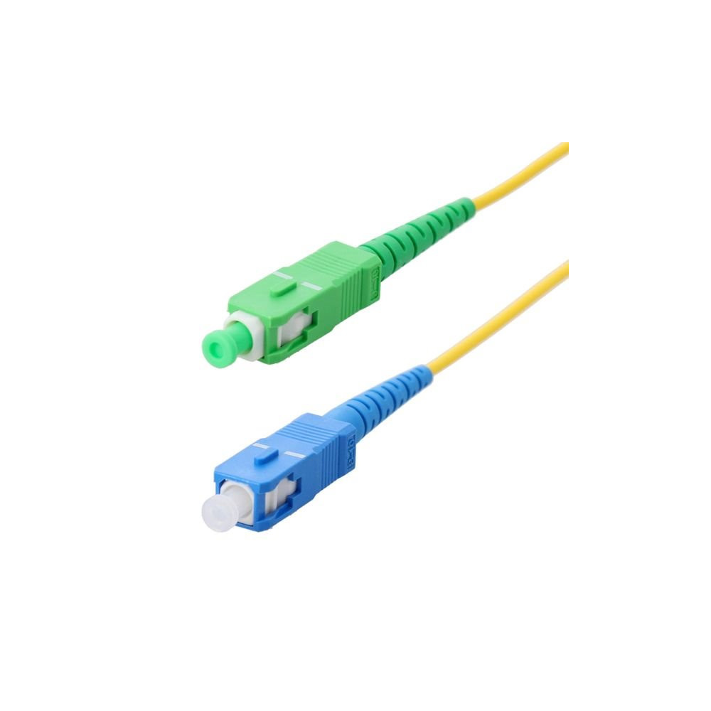 La particularité de ce cordon réside dans sa connectique mixte : d'un côté un connecteur SC-UPC (coupe droite, couplage universel) et de l'autre un SC-APC (coupe angulaire), une combinaison propre aux installations Free qui différencie ce câble des jarretières standard. Cette configuration spécifique est indispensable pour assurer une liaison sans perte de signal ni dégradation des performances.