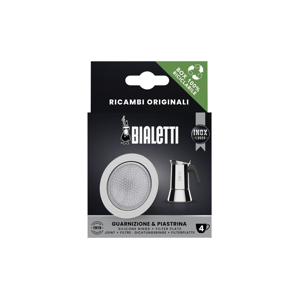 BIALETTI - Filtre inox + 1 joint silicone pour cafetières italiennes inox 4 tasses