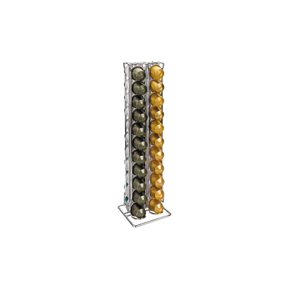 Distributeur de 44 capsules Nespresso - Fuji - Fil chromé - Dimensions : 10 x 10 x 38 cm - Acier inoxydable.