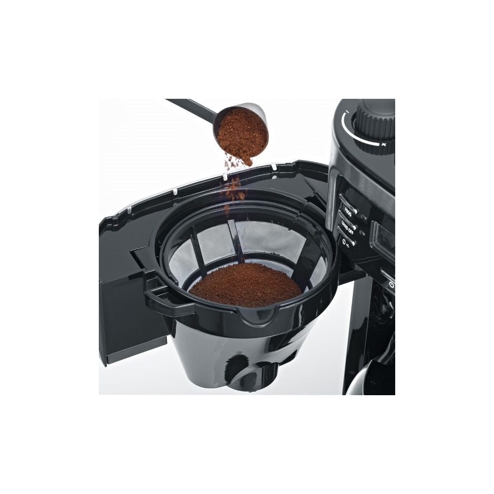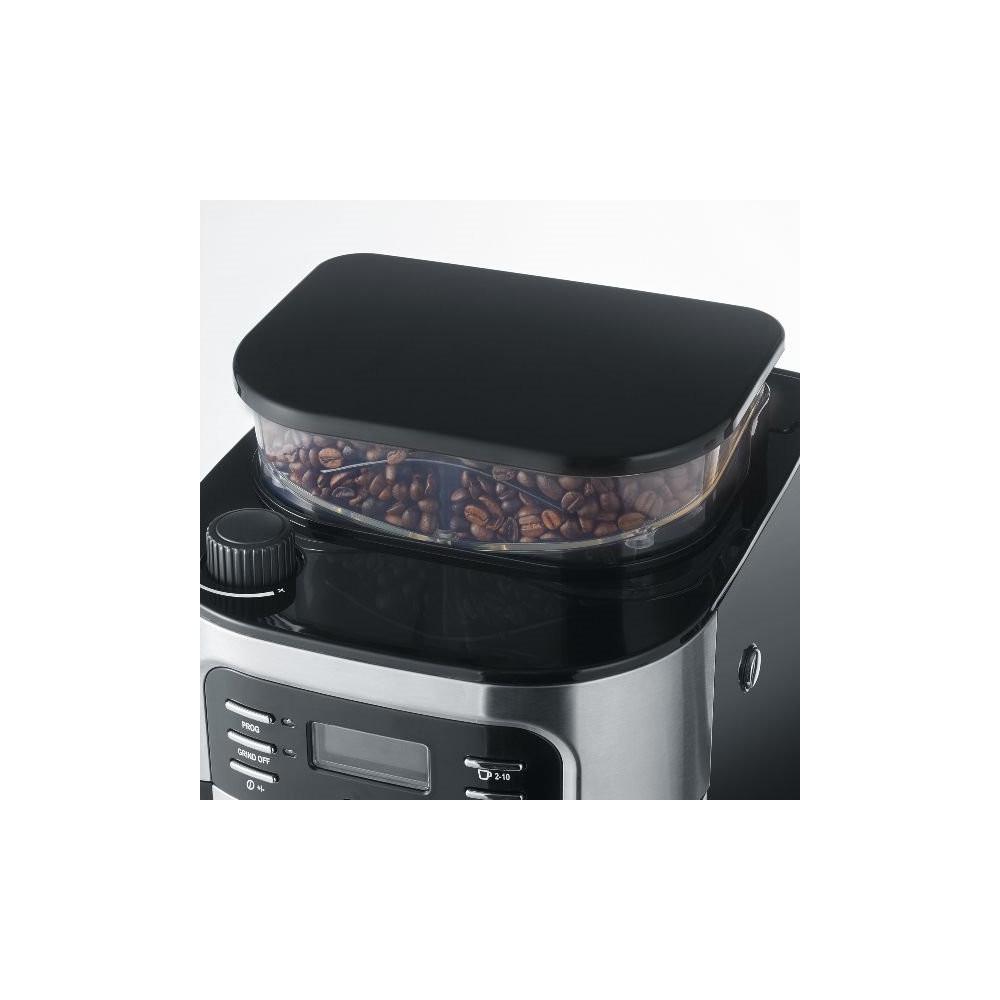La cafetière filtre avec broyeur intégré Severin 4810, coloris noir et inox, est la machine idéale pour les amateurs de café fraîchement moulu qui souhaitent profiter d'un arôme optimal sans multiplier les appareils. Compacte et élégante dans sa finition noire et inox, elle s'intègre parfaitement dans tout type de cuisine moderne.