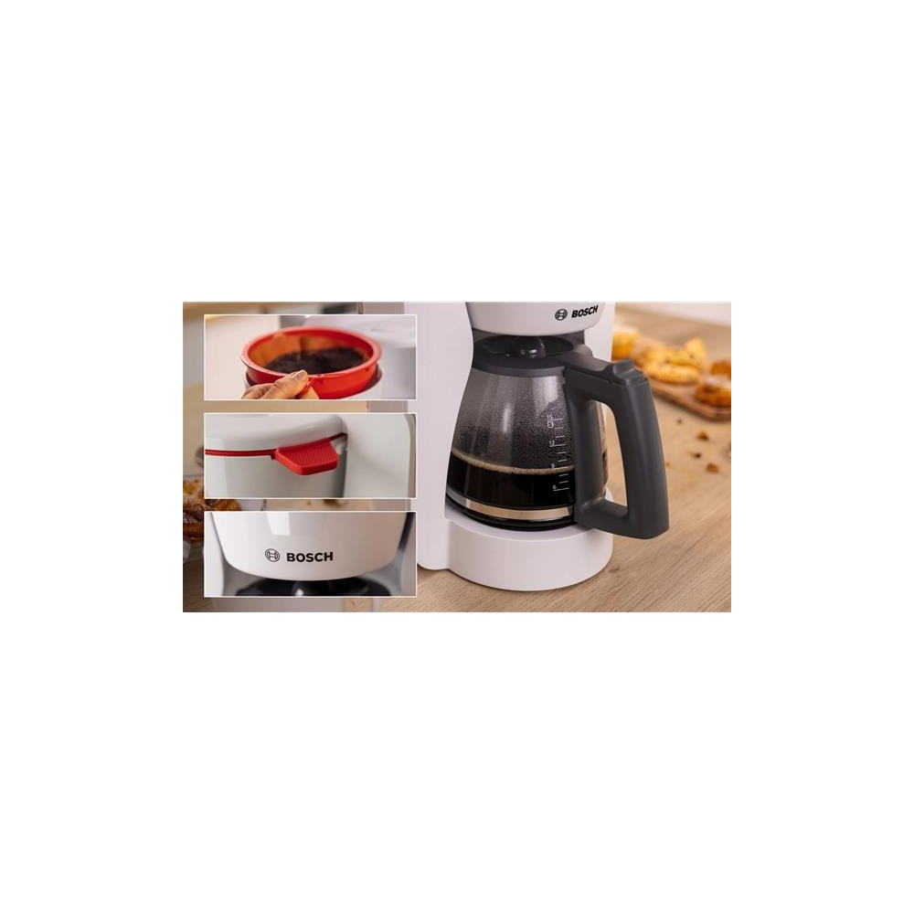 Apportez une touche de modernité à votre cuisine avec la cafetière filtre BOSCH MyMoment TKA2M111 en blanc mat. Son design raffiné mêlant finitions mates et reflets brillants en blanc s'intègre avec élégance dans tous les styles d'intérieurs contemporains. Cette cafetière filtre pensée pour les amateurs de café au quotidien combine esthétique soignée et fonctionnalités pratiques.