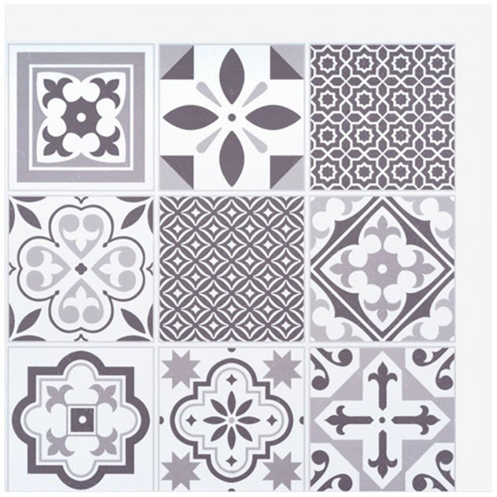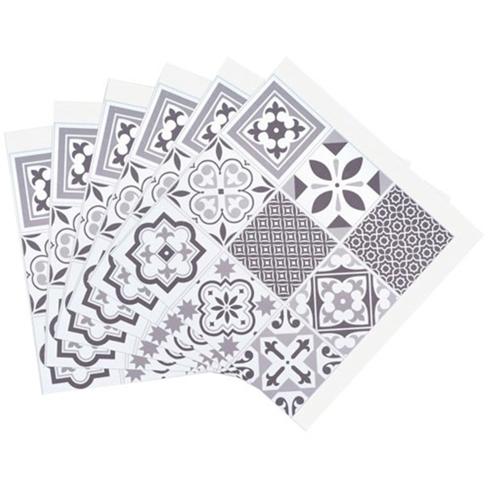 Les dalles au format 30,5 x 30,5 cm sont dotées d'un adhésif puissant en face arrière, conçu pour adhérer sur des supports existants lisses et propres : carrelage, peinture, enduit, etc. Le matériau imperméable assure une résistance à l'humidité adaptée aux environnements de cuisine et de salle de bain. Leur finition soignée imite fidèlement la texture mate et les motifs répétitifs des vrais carreaux de ciment.