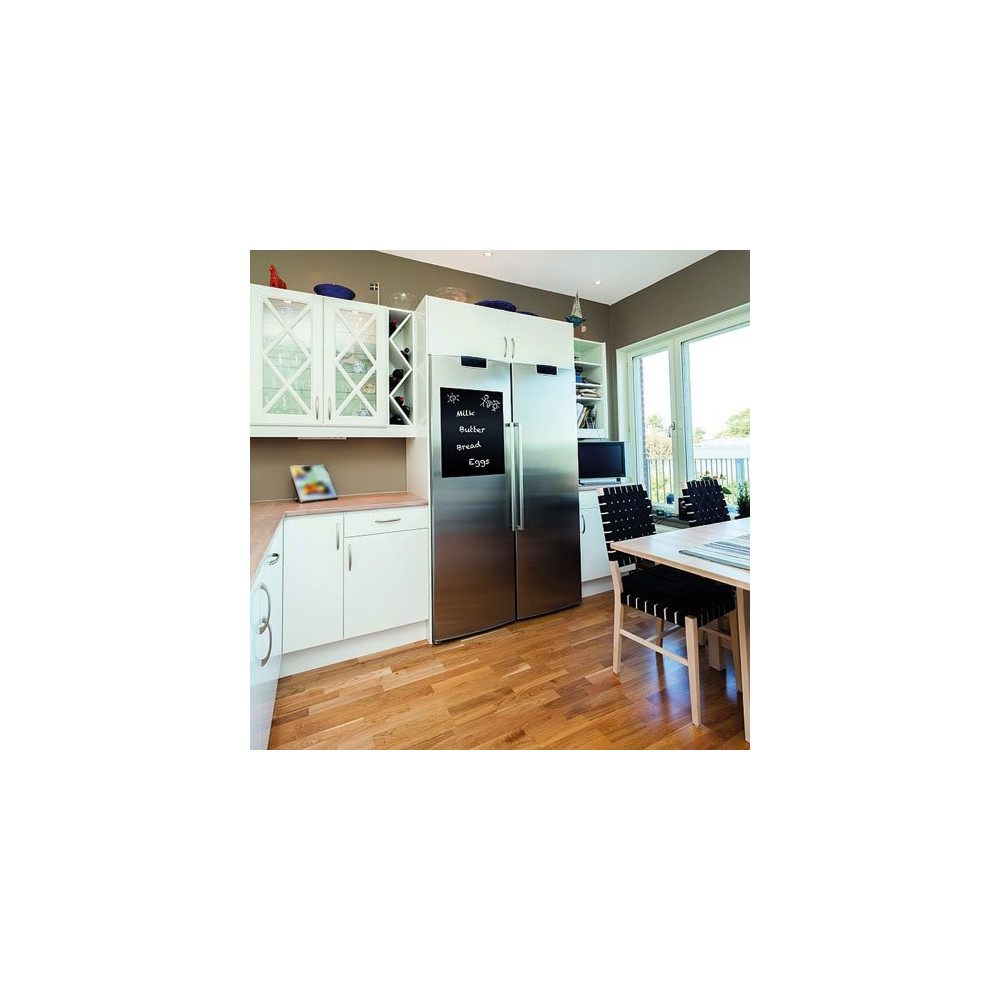 Posé sur un meuble, une porte, un mur carrelé ou même un réfrigérateur, cet adhésif noir de D-C-FIX se nettoie facilement avec un chiffon humide entre chaque utilisation. C'est une option déco tendance et fonctionnelle, parfaite pour les familles, les enseignants ou les amateurs de déco industrielle.