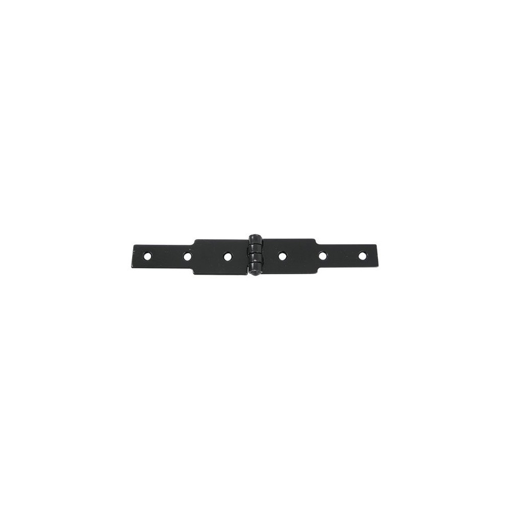 La charnière à congés bout carrée longueur 280 et 140 mm largeur 50 mm épaisseur 2.5 mm noir de chez Afbat est conçue pour l'articulation des volets doubles en bois. Les bouts sont carrés, le diamètre des trous est de 6.2. De haute qualité fabriqué en France.