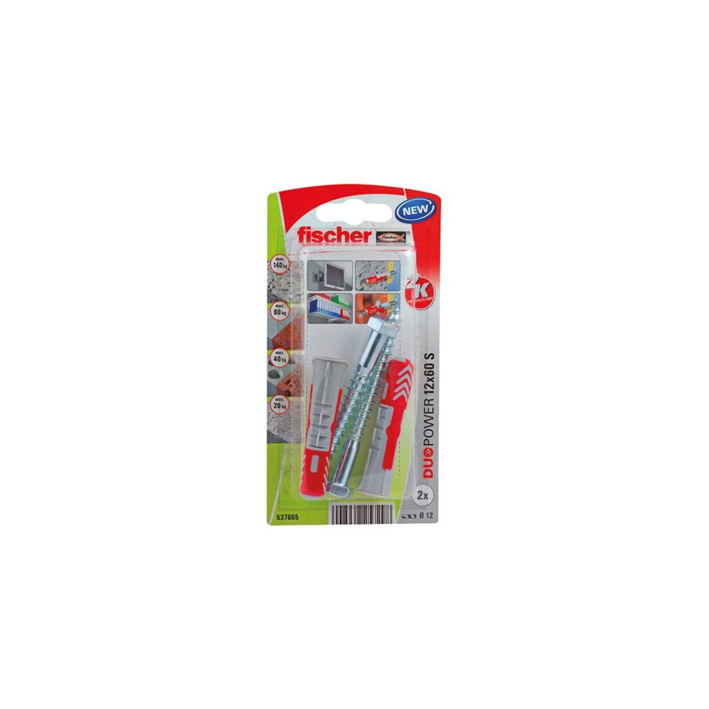 Pour les fixations lourdes nécessitant un ancrage robuste, la cheville FISCHER DUOPOWER 12x60 S offre des performances mécaniques de premier ordre. Conçue à partir de deux matières techniquement complémentaires, elle combine rigidité structurelle et souplesse d'adaptation pour s'expan­ser de manière optimale quel que soit le support rencontré. C'est la cheville universelle par excellence pour les chantiers exigeants.