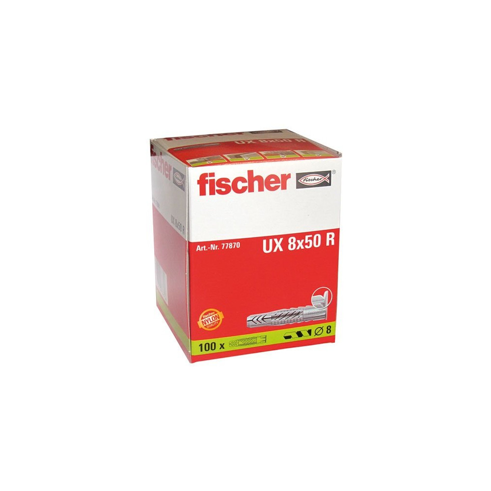 La cheville tous matériaux UX 8 x 50 R avec collerette boîte de 100 de chez Fischer Fixation tient dans tous les matériaux de construction. Tenue maximale dans les matériaux de construction creux et en panneaux grâce à la formation d'un noeud. Forme un noeud dans les matériaux creux et en plaques. Guidage optimal de la vis grâce aux ailettes en diagonale. Sécurité pour l'installation grâce à un blocage anti-rotation. La cheville universelle Fischer UX est une cheville en matière synthétique fabr