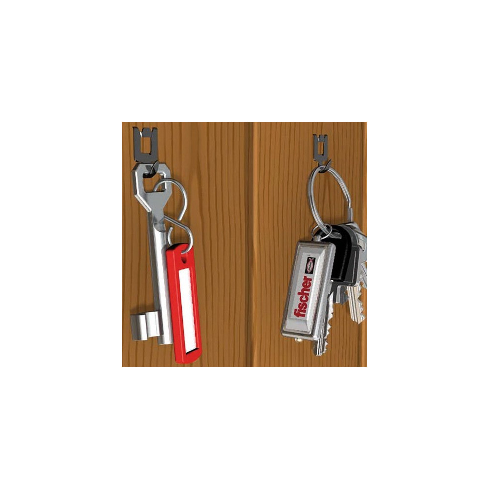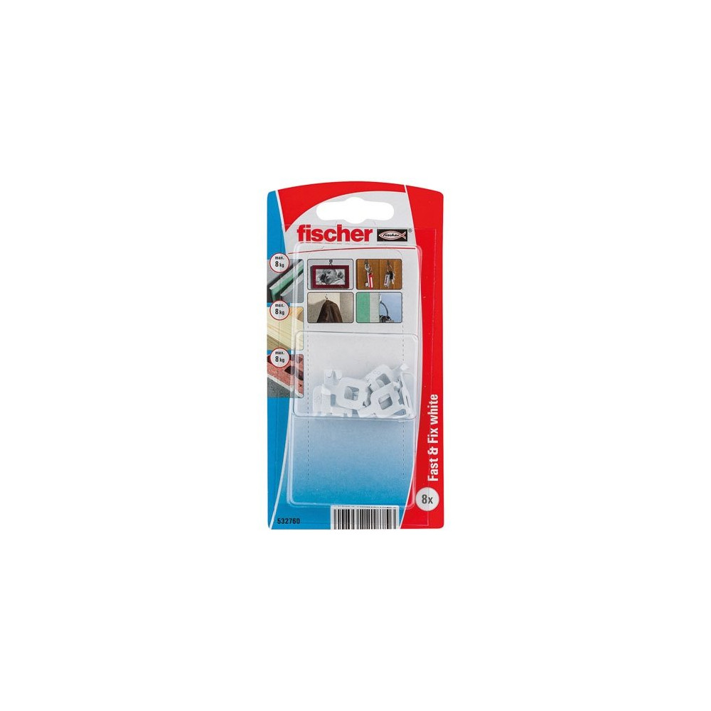 Le corchet Fast & Fix supporte 5 Kg coloris blanc lot de 8 de chez Fischer Fixation est un système de fixation pour charges légères. Le crochet est enfoncé directement dans le plâtre, les plaques de plâtre et les bois tendres avec le pouce, pas besoin de perceuse et de marteau. Les objets légers tels que les photos, les crochets à clés et les vêtements peuvent être accrochés avec Fischer Fast & Fix. La capacité de charge peut être augmentée en reliant deux crochets muraux jusqu'à 10 kg. Le croch