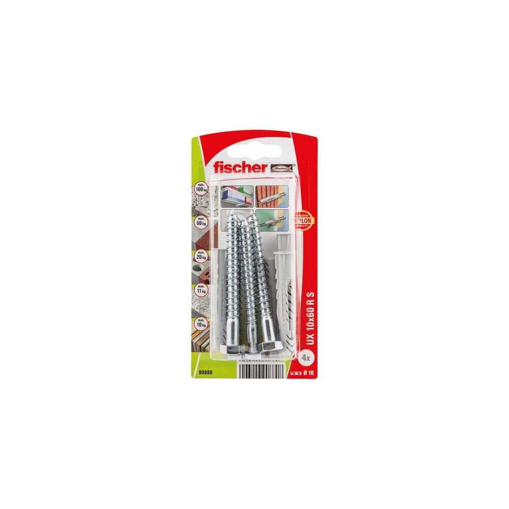 FISCHER - Cheville multimat ux 10x60 rs blister x4