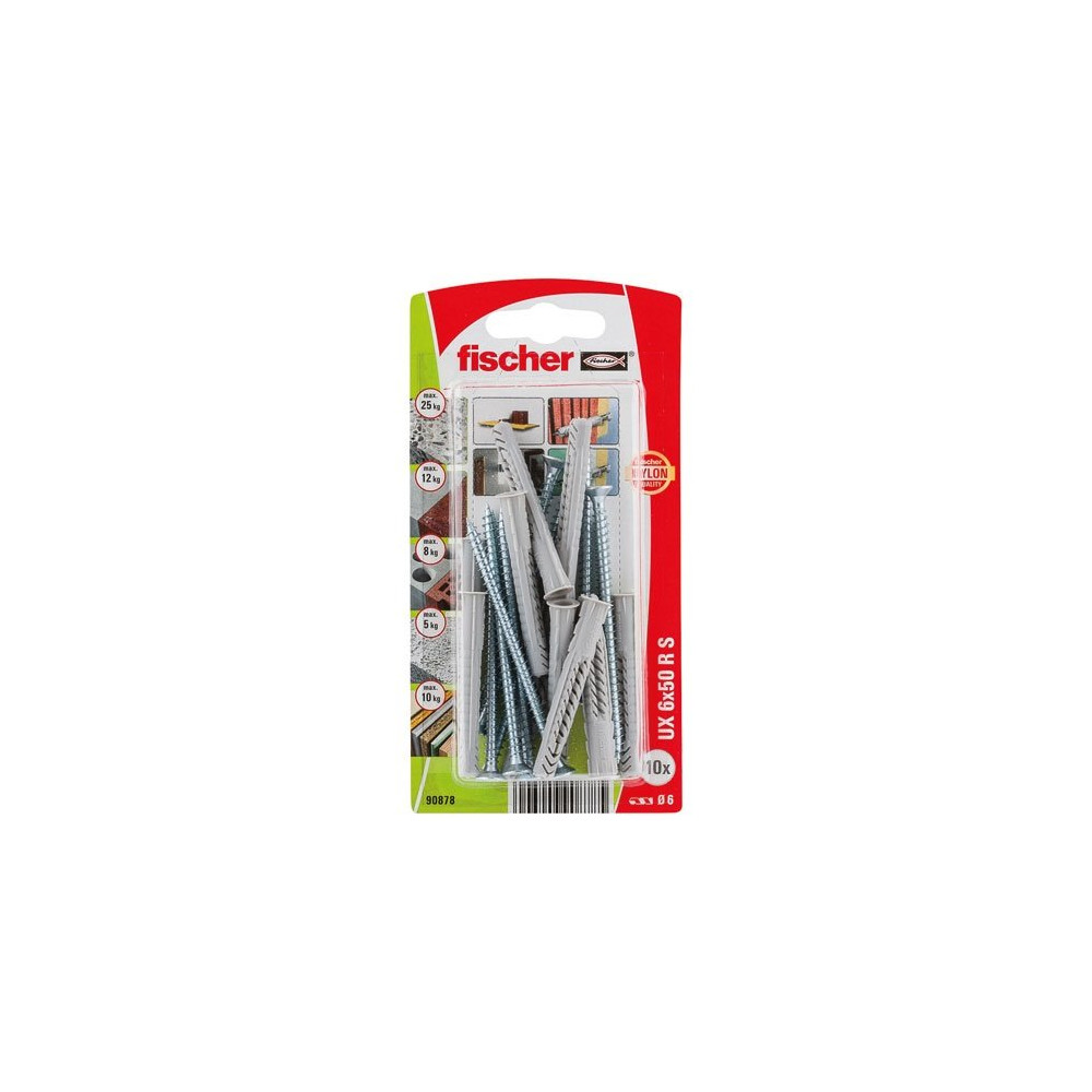 La cheville universelle Fischer UX 6x50 R, proposée en blister économique de 10 pièces, est la solution de fixation légère et polyvalente pour tous les petits travaux de bricolage et d'aménagement intérieur. Fabriquée en nylon technique de qualité Fischer, elle s'adapte à une grande variété de matériaux de construction sans nécessiter de cheville spécifique par support.