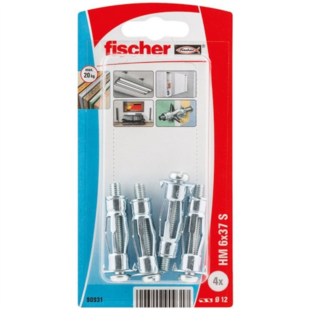 La cheville corps creux Fischer HM 6x37 S est la version à plus grand diamètre de la gamme HM, pensée pour les fixations sur parois creuses nécessitant une capacité de charge plus élevée. Conditionnée en blister de 4 unités avec vis métrique incluse, elle est directement utilisable sans visserie additionnelle sur plaques de plâtre, carreaux de plâtre ou briques creuses.