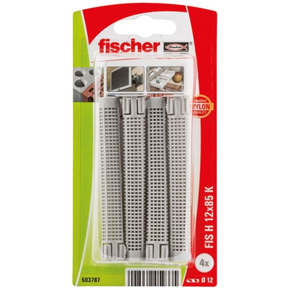 Le tamis d'injection Fischer FIS HK 12x85 est un système de fixation chimique destiné aux maçonneries creuses (briques creuses, parpaings, blocs alvéolaires) où les chevilles mécaniques classiques ne peuvent pas déployer leur expansion correctement. Ce blister de 4 tamis ouvre la voie à des ancrages résine solides et précis dans des supports à alvéoles.