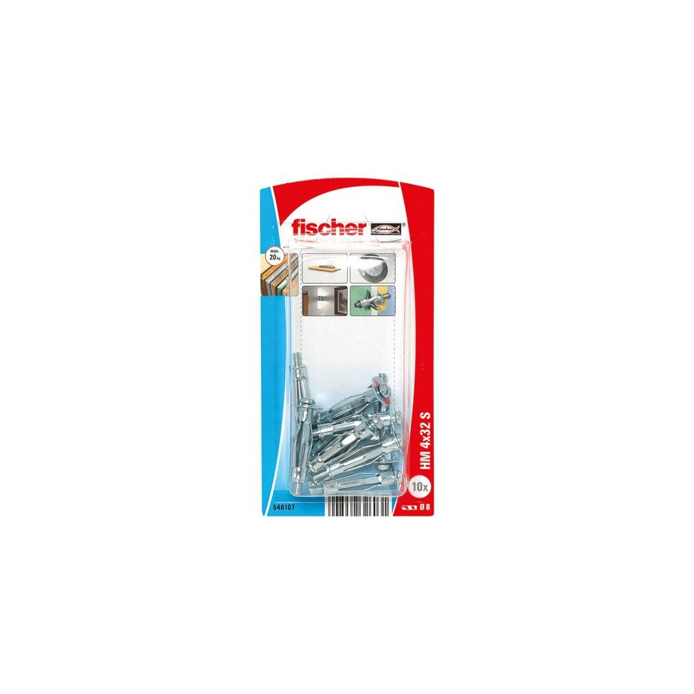 Pour la mise en œuvre, percez un trou adapté au diamètre de la cheville, insérez-la avec la pince de montage, retirez la pince une fois l'ancrage confirmé, puis fixez votre élément avec la vis métrique M4. Ce blister de 4 chevilles HM 4x32 S est disponible chez Brikoleur, idéal pour vos fixations spécifiques sur matériaux à paroi creuse.