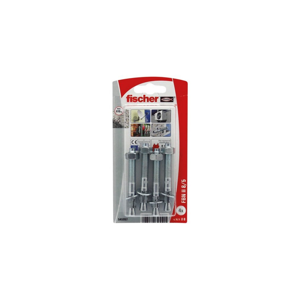 Le codage FBN II 8/5-4K indique un diamètre de 8 mm avec une profondeur d'ancrage de 5 cm et une saillie de tige de 4 K (environ 4 fois le diamètre nominal). La version II de ce goujon intègre des améliorations mécaniques par rapport à la génération précédente, notamment une meilleure distribution des contraintes d'expansion et une résistance accrue à l'arrachement. Le blister contient 10 goujons, idéal pour les chantiers de taille moyenne.