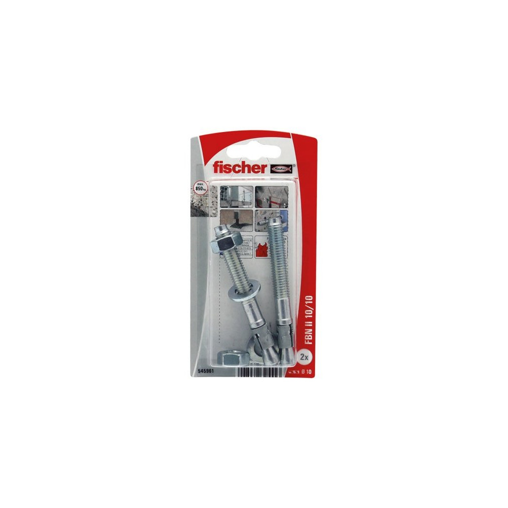La nomenclature FBN II 10/10-2K se décrypte ainsi : diamètre 10 mm, ancrage 100 mm, saillie de 2K (environ 2 fois le diamètre). Ce profil plus profond par rapport au modèle 10/5 est particulièrement utile lorsque l'épaisseur de béton disponible est importante ou que les valeurs de charge requises sont plus élevées. Le blister de 10 goujons est adapté aux chantiers professionnels.