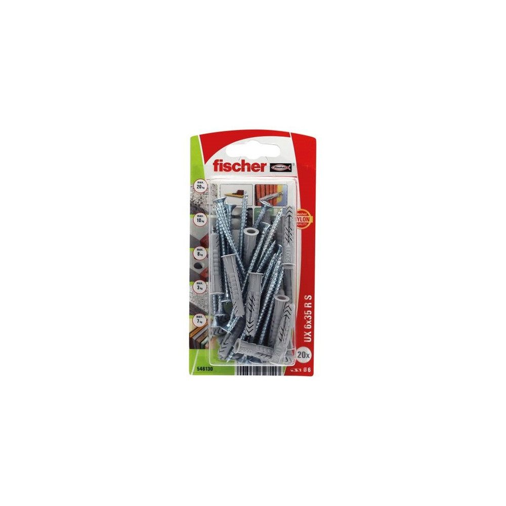 La cheville universelle UX 6x35 RS de Fischer est la solution de référence pour fixer dans tous types de matériaux de construction sans avoir à se soucier du support. Qu'il s'agisse de béton plein, de brique creuse, de parpaing, de béton cellulaire ou de plâtre, cette cheville nylon à expansion s'adapte automatiquement à la structure du support pour garantir une prise optimale.