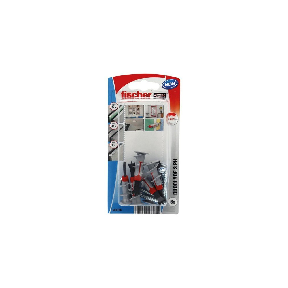 La cheville autoforeuse Duoblade Fischer avec vis à tête ronde est la solution idéale pour fixer facilement des objets sur les plaques de plâtre (BA13) sans avoir besoin d'un outil de perçage préalable. Ce lot de 6 chevilles avec vis vous permet de réaliser rapidement plusieurs fixations dans les cloisons légères.