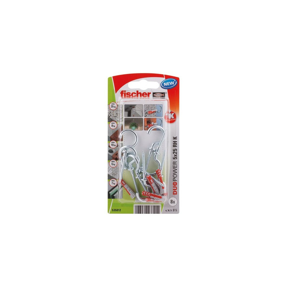 Pratique et ingénieuse, la cheville Duopower 5x25 avec crochet rond Fischer combine en un seul produit la fiabilité d'une cheville haute performance et la fonctionnalité d'un crochet prêt à l'emploi. Ce blister de 8 unités est parfait pour suspendre rapidement tableaux, luminaires, plantes ou objets décoratifs sur vos murs.