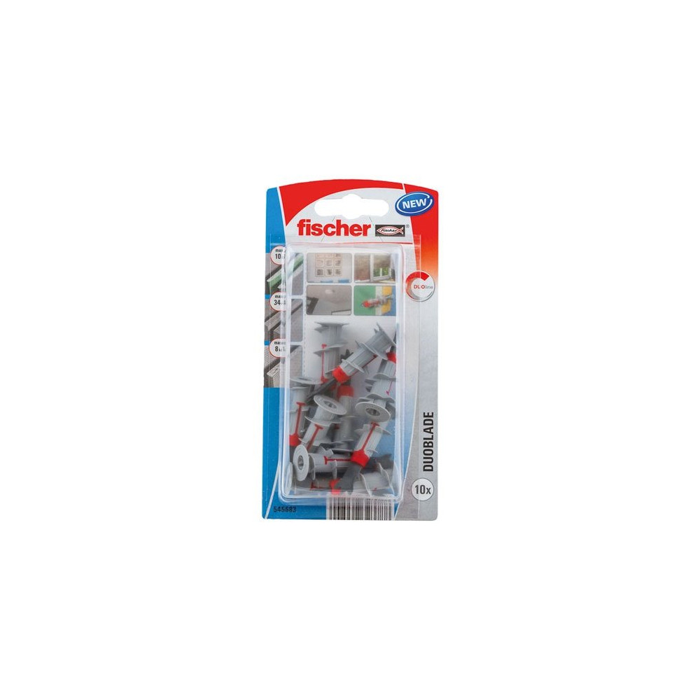 Conçue spécifiquement pour les cloisons en plaques de plâtre, la cheville autoforeuse Duoblade Fischer se distingue par sa facilité de pose exceptionnelle. Ce blister de 10 chevilles est idéal pour les travaux d'aménagement intérieur, les poses de rangements, d'accessoires ou de petits équipements sur cloisons légères.