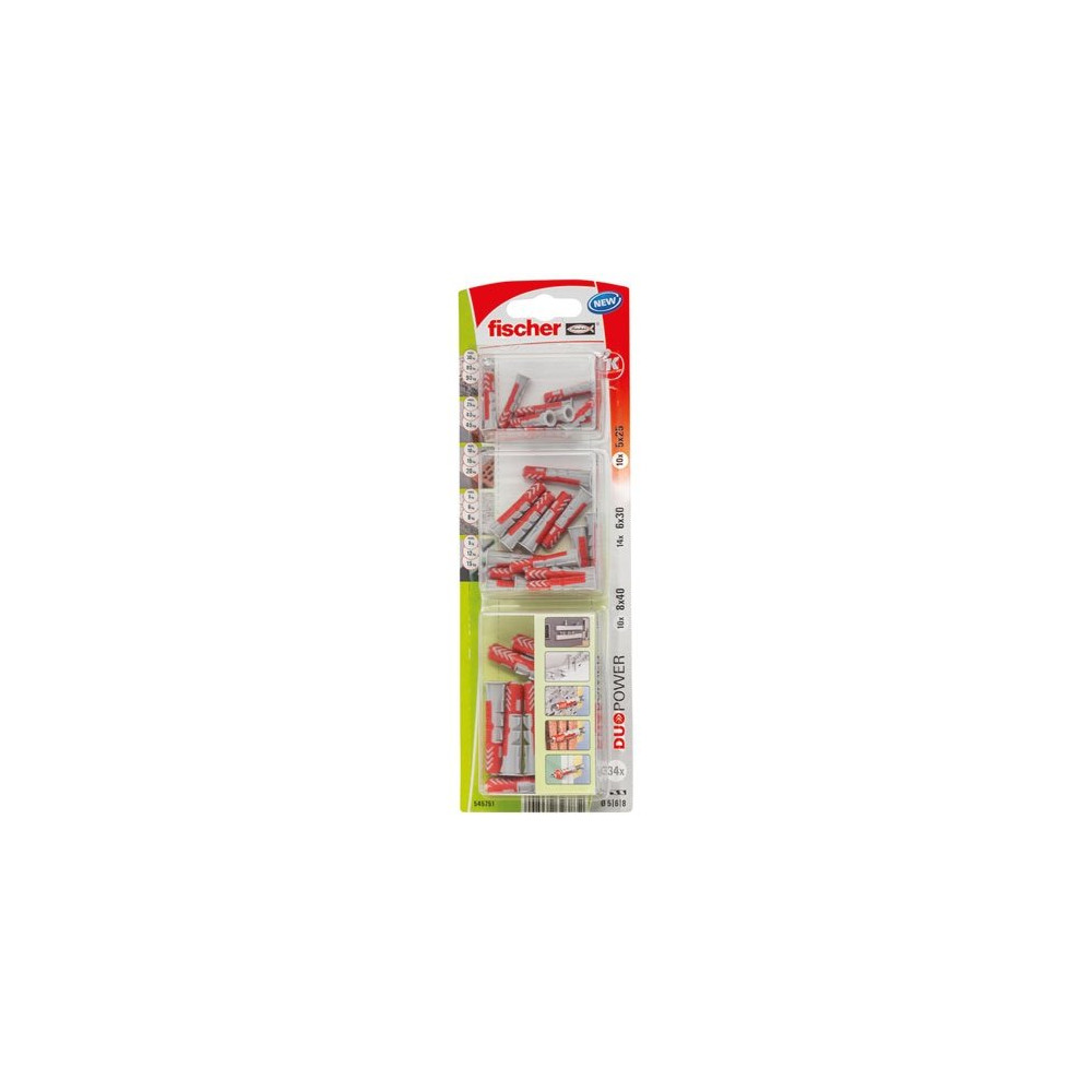 Pour ne jamais être à court de la bonne cheville, Fischer propose cet assortiment Duopower en 3 tailles regroupées dans un seul blister pratique de 34 pièces. Une solution complète et économique pour couvrir l'ensemble de vos besoins en fixation murale, du bricolage du week-end à la rénovation plus intensive.