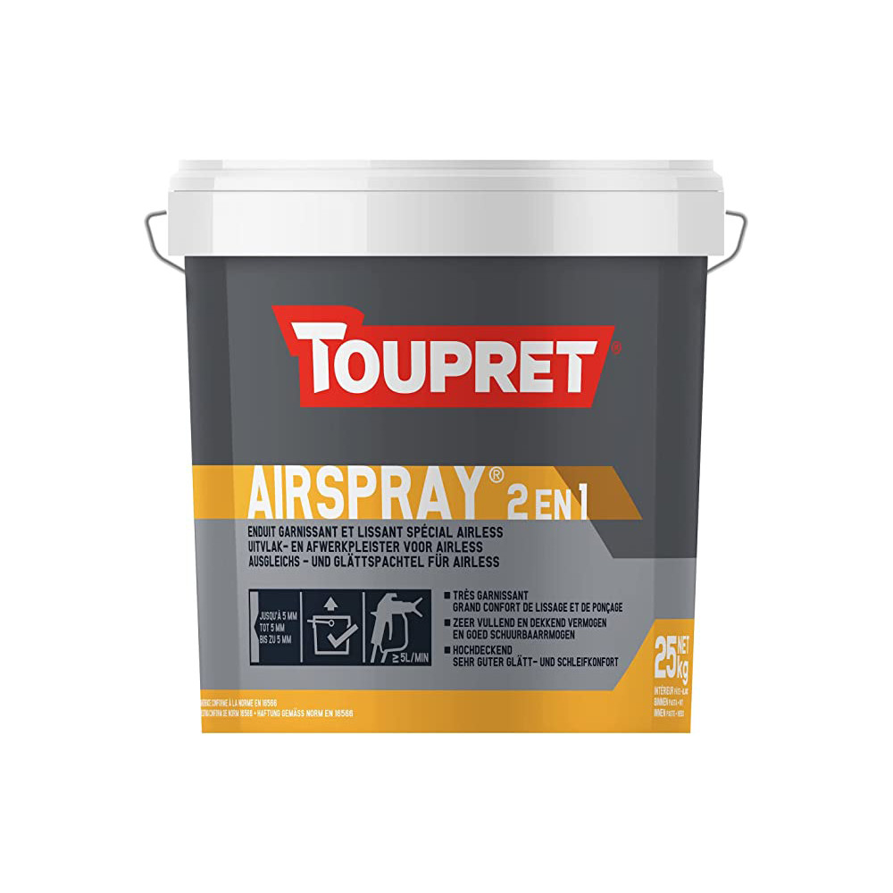 TOUPRET - Airspray 2 en 1 25 kg Enduit Garnissant et Lissant Spécial Airless