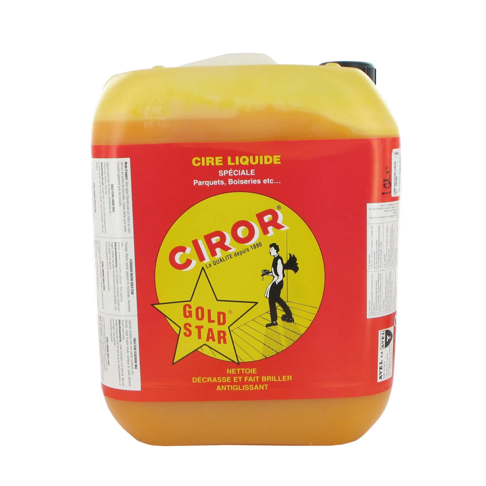 Cire liquide CIROR Gold Star pour parquet, action anti-glissante idéale pour l'entretien des parquets. | A base de cires minérales. | Rendement : 20 à 30 m² pour 1 L. | Coloris : jaune.