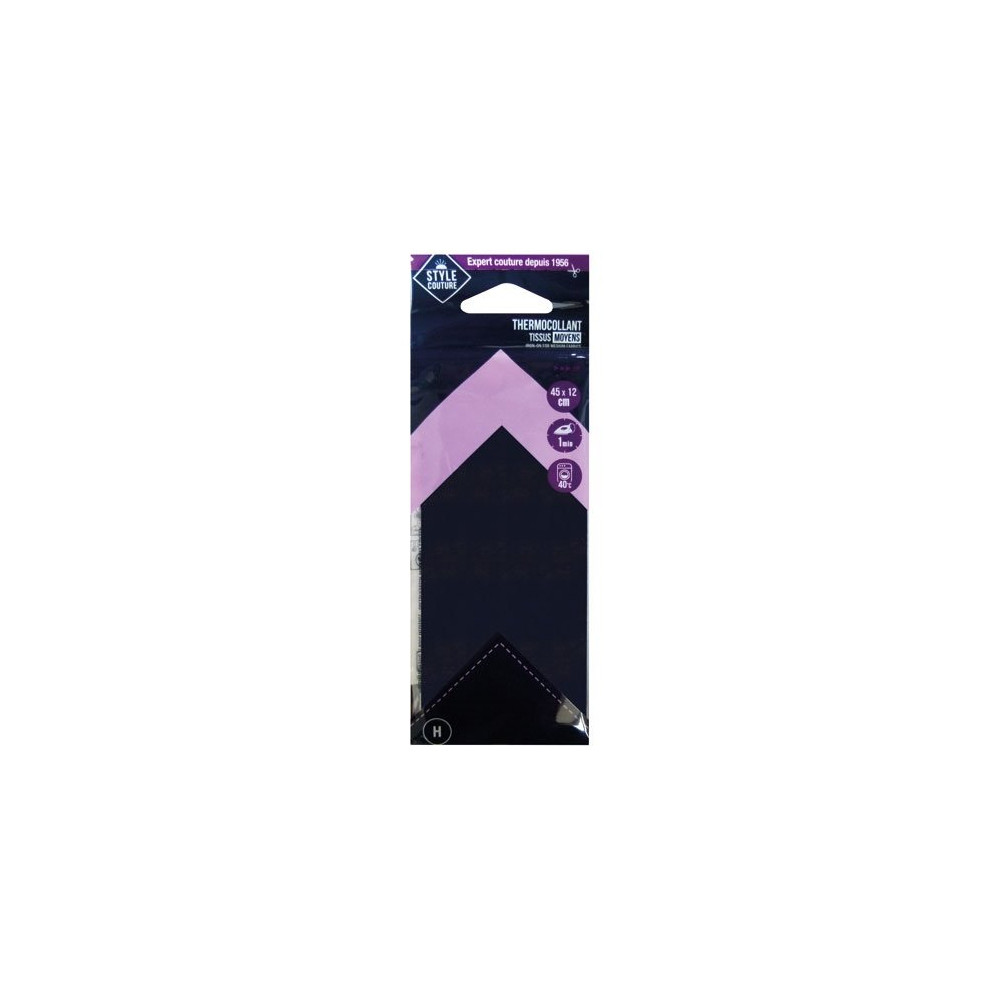 Sa toile non tissée enduite d'une résine thermofusible garantit une adhérence fiable et durable sur les matières courantes. La teinte noire de ce thermocollant est spécialement pensée pour les tissus sombres — pantalons, vestes, robes noires, jeans — afin d'éviter toute transparence ou effet de halo indésirable visible au travers du tissu. Le format 45 x 12 cm est idéal pour des applications ciblées : ourlets, cols, poignets ou petites réparations.
