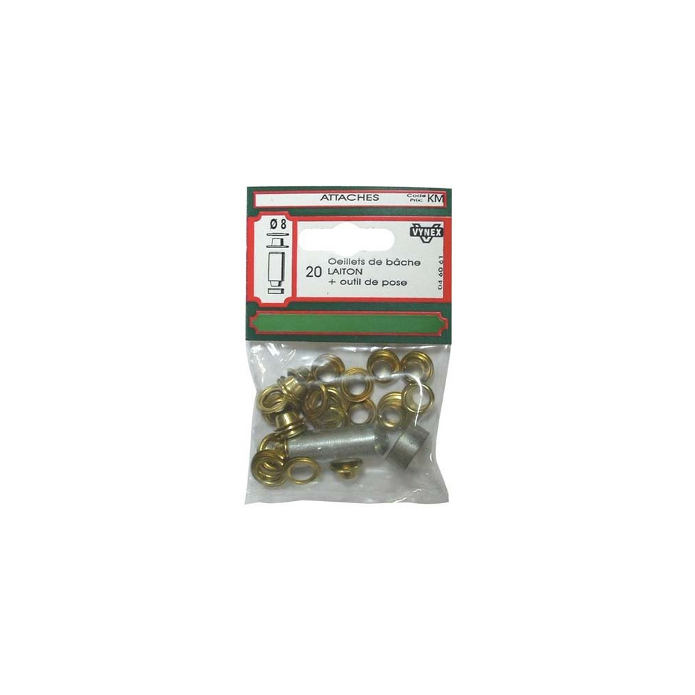 Le kit œillets de bâche diamètre 8 mm avec outil de pose VYNEX est la solution complète pour renforcer et perfectionner vos bâches de protection, toiles de store, banderoles ou voiles d'ombrage. Chaque blister contient 20 œillets prêts à poser, accompagnés de leur outil de fixation dédié, pour un résultat propre et durable sans matériel professionnel.