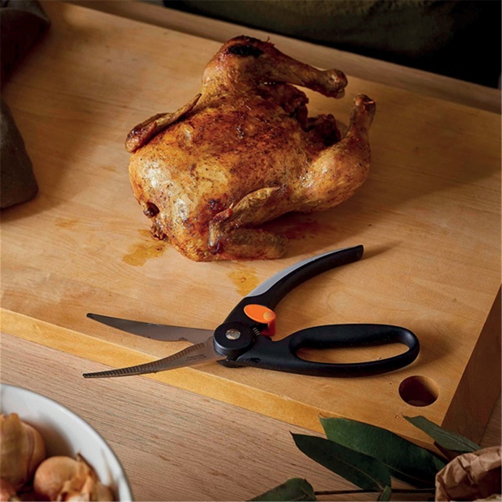 Face aux découpes les plus exigeantes, la cisaille à volailles Fiskars Pro 25 cm démontre toute sa puissance. Conçue pour la préparation des volailles et du gibier, cette cisaille de 25 cm de la gamme Pro offre la robustesse et la précision attendues par les cuisiniers soucieux d'un travail bien fait, qu'il s'agisse d'un poulet rôti dominical ou d'une pièce de gibier plus coriace.