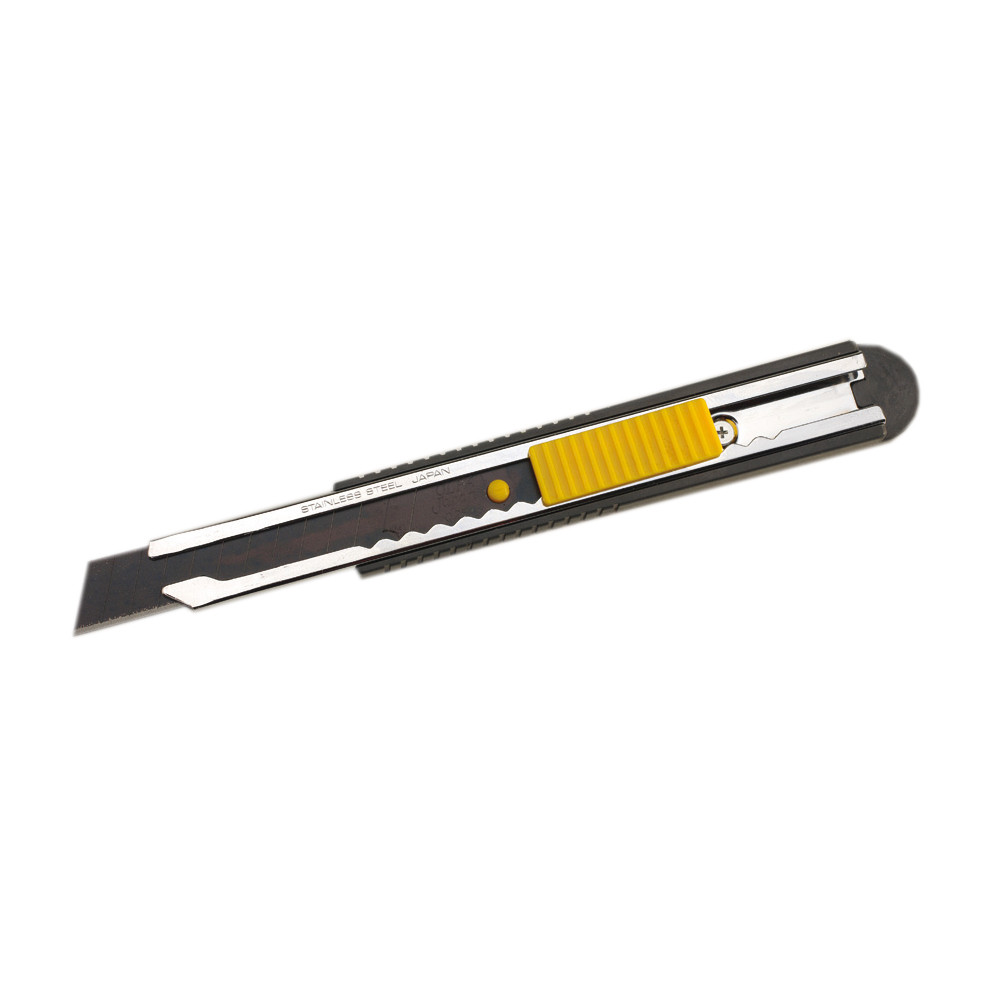 Le manche est réalisé en ABS noir robuste, offrant une prise en main ferme et confortable lors d'une utilisation prolongée. Le guide-lame en acier inoxydable assure un maintien parfait de la lame, éliminant les risques de dérapage pour une trajectoire toujours maîtrisée. La lame de 12,5 mm, plus fine et plus affûtée que les cutters standards, glisse sur le papier sans l'arracher ni le déchirer.