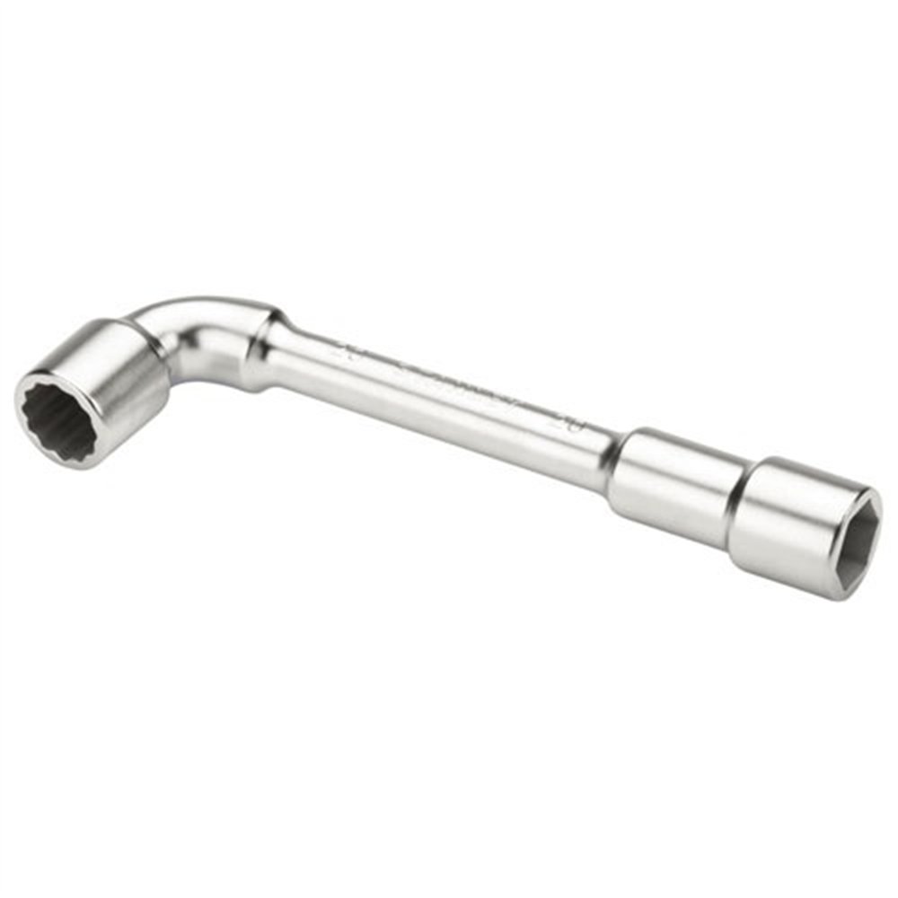 Cette clé à pipe de 20 mm adopte un profil 6 pans 12 points (6x12p), ce qui lui permet d'attaquer les écrous dans des angles restreints et de multiplier les positions de prise. Son extrémité débouchée est l'atout majeur de ce modèle : elle autorise le passage d'une tige filetée sans contrainte et permet l'insertion d'une broche afin d'augmenter significativement le couple de serrage, là où une clé classique serait bloquée.