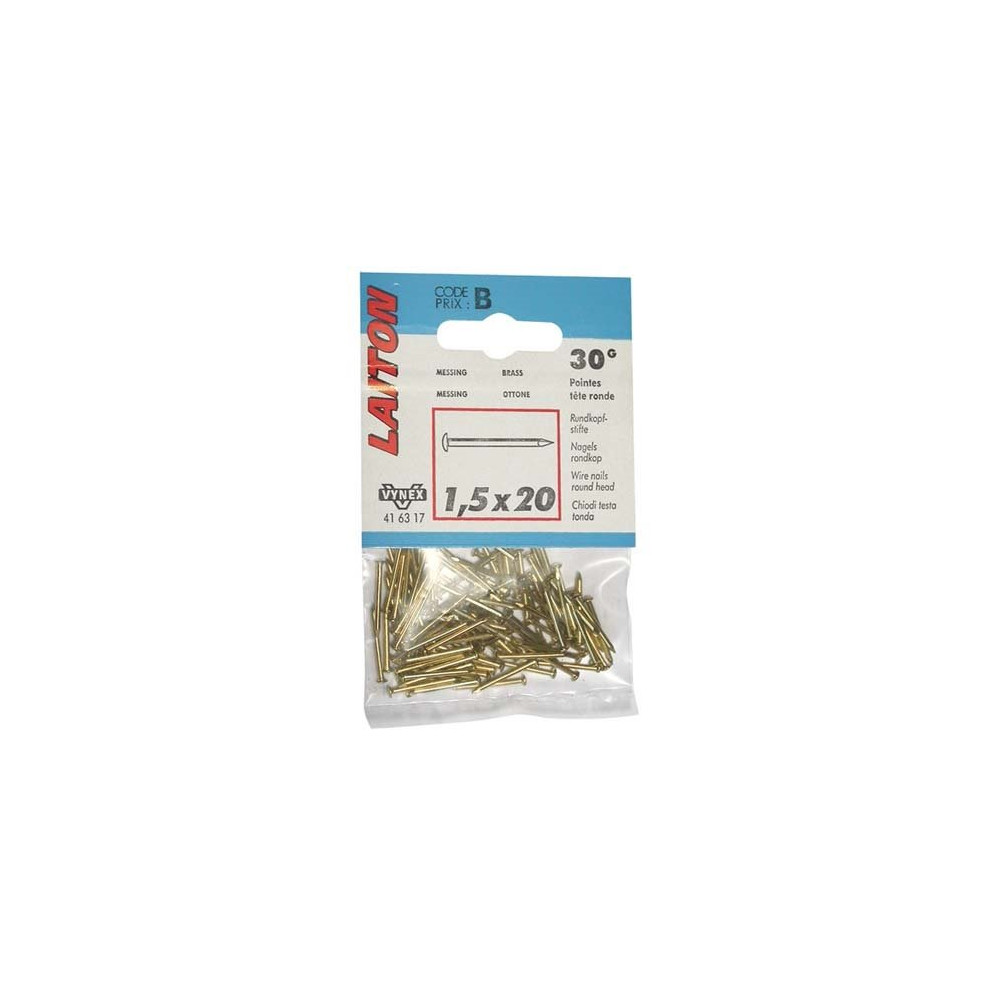 Associez ces pointes à un marteau fin de menuisier et un chasse-clou de diamètre adapté pour un travail propre et sans marque. Brikoleur propose une large gamme de pointes laiton VYNEX en différents formats pour répondre à tous vos besoins. En cas de travaux sur bois dur, un pré-perçage avec un foret fin est conseillé pour éviter que la pointe ne dévie.