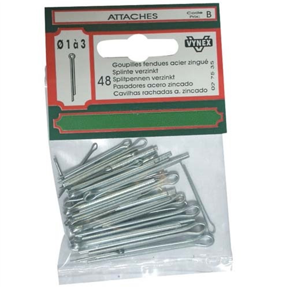 Chaque goupille est fabriquée en acier zingué, lui conférant une bonne résistance à la rouille et à l'usure. Ce lot de 48 pièces regroupe plusieurs diamètres allant de 1 mm au 3 mm maximum, ce qui en fait une solution complète pour faire face à différentes configurations mécaniques. Leur conception fendue leur permet de résister efficacement aux efforts latéraux, assurant le maintien en position de l'axe qu'elles verrouillent.