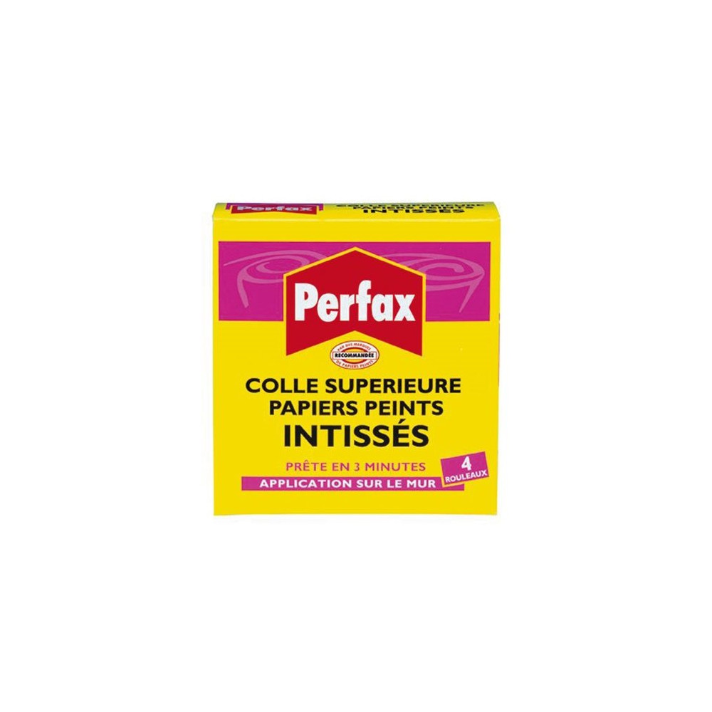 Colle supérieure papiers peints intissés. Prête en 3 min. Application sur le mur. Paquet de 200g : 4 rouleaux.