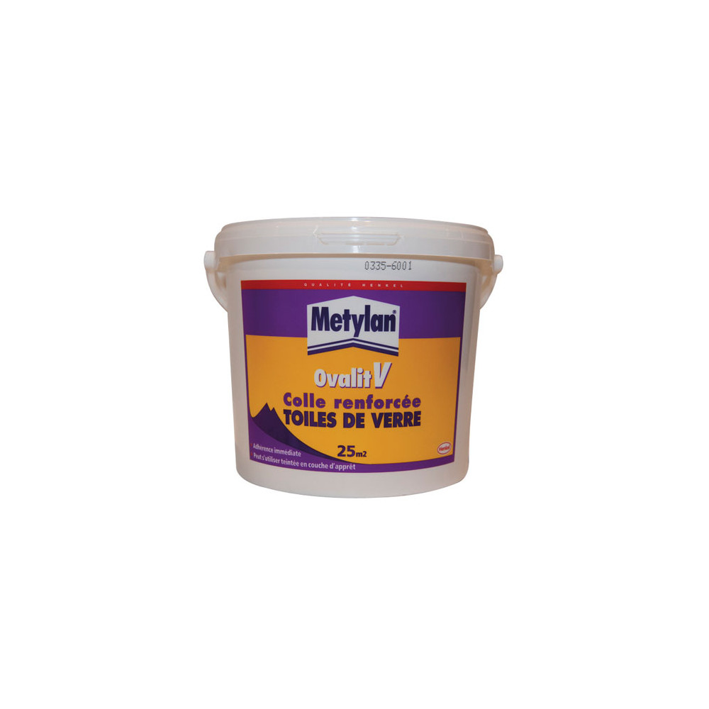 La colle Ovalit V de Metylan en seau de 5 kg est une colle en pâte renforcée de qualité professionnelle, spécialement formulée pour la pose de toiles de verre et de revêtements muraux à peindre. Ce grand format de 5 kg est particulièrement adapté aux chantiers importants, aux artisans et aux particuliers souhaitant traiter de grandes surfaces en une seule fois sans interruption.