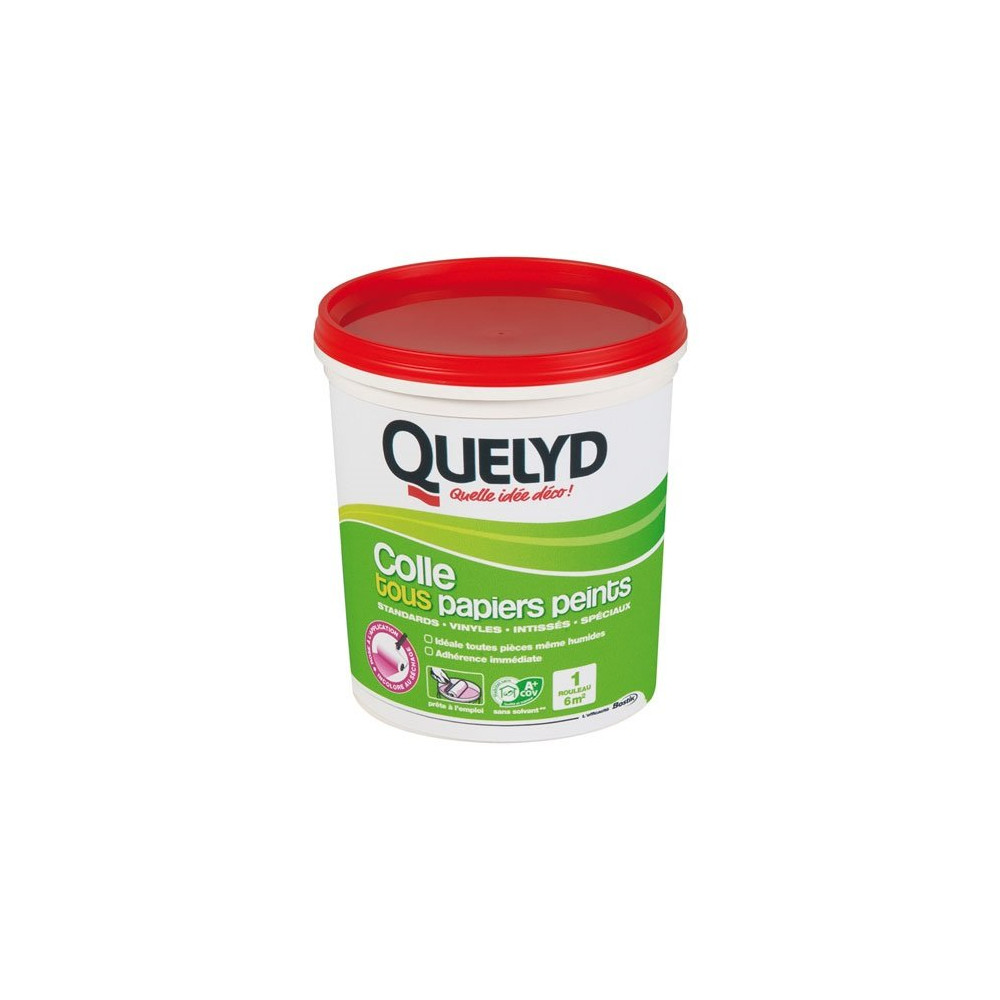 Pour une pose sans accroc, appliquez la colle uniformément sur le mur (technique mur encoller) ou sur le papier selon le type de revêtement choisi. Laissez pénétrer quelques instants avant de poser le lé et raccordez soigneusement les motifs. Ce format compact de 1 kg signé Quelyd est parfait pour tester une pièce ou réaliser un recollage ciblé.