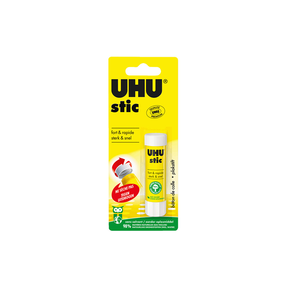 Sa composition responsable en fait un choix sûr et écoresponsable : la formule est élaborée à 98 % à partir de matières naturelles, eau incluse. Elle est également sans solvant et lavable à l'eau, ce qui la rend parfaitement adaptée à une utilisation par les enfants comme par les adultes. Le bouchon anti-séchage garanti par UHU prolonge la durée de vie du stick entre chaque utilisation.