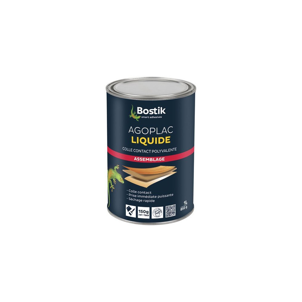 Agoplac Liquide de Bostik en grand format 5 litres est une colle contact néoprène haute performance, formulée pour répondre aux exigences des professionnels du bâtiment, de l'agencement et de la menuiserie. Son format 5 L est particulièrement adapté aux chantiers de moyenne et grande envergure, offrant un excellent rapport volume/rendement pour des surfaces importantes à coller.