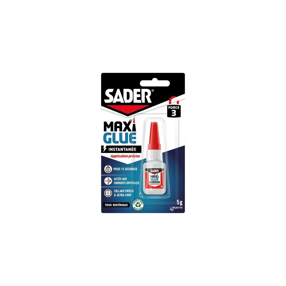 Retrouvez la Sader Maxi Glue Précision Liquide 5g dans la sélection de colles professionnelles disponible chez Brikoleur. Refermez soigneusement l'embout après chaque usage pour éviter le dessèchement de la colle et prolonger la durée de vie du flacon.