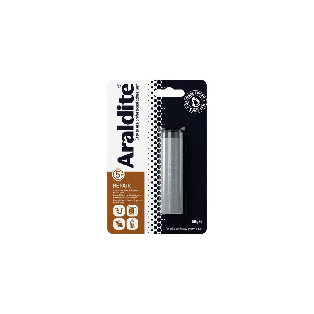 Adhère sur surfaces humides et Haute résistance aux chocs et vibrations, à l'humidité, aux huiles, aux produits chimiques. Haute tenue aux températures : 40°C à +120°C.Peut être poncée, percée, taraudée, peinte après séchage dARALDITE REPARATION est une pâte Époxy haute performance pour colmater (fuites, fissures), souder (tuyauteries, plomberie), sceller (carrelage), réparer (meubles, outils) et fixer (patères, tringles) en intérieur et extérieur.