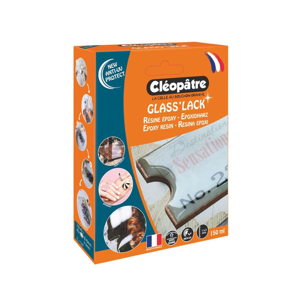La Résine Époxy Glass'Lack CLÉOPÂTRE en format 150 ml est un duo bi-composants conçu pour créer des surfaces transparentes imitant parfaitement le verre, avec un rendu ultra-brillant et une dureté remarquable. Ce format de 150 ml est idéal pour les projets créatifs de taille moyenne, les retouches et les finitions précises.