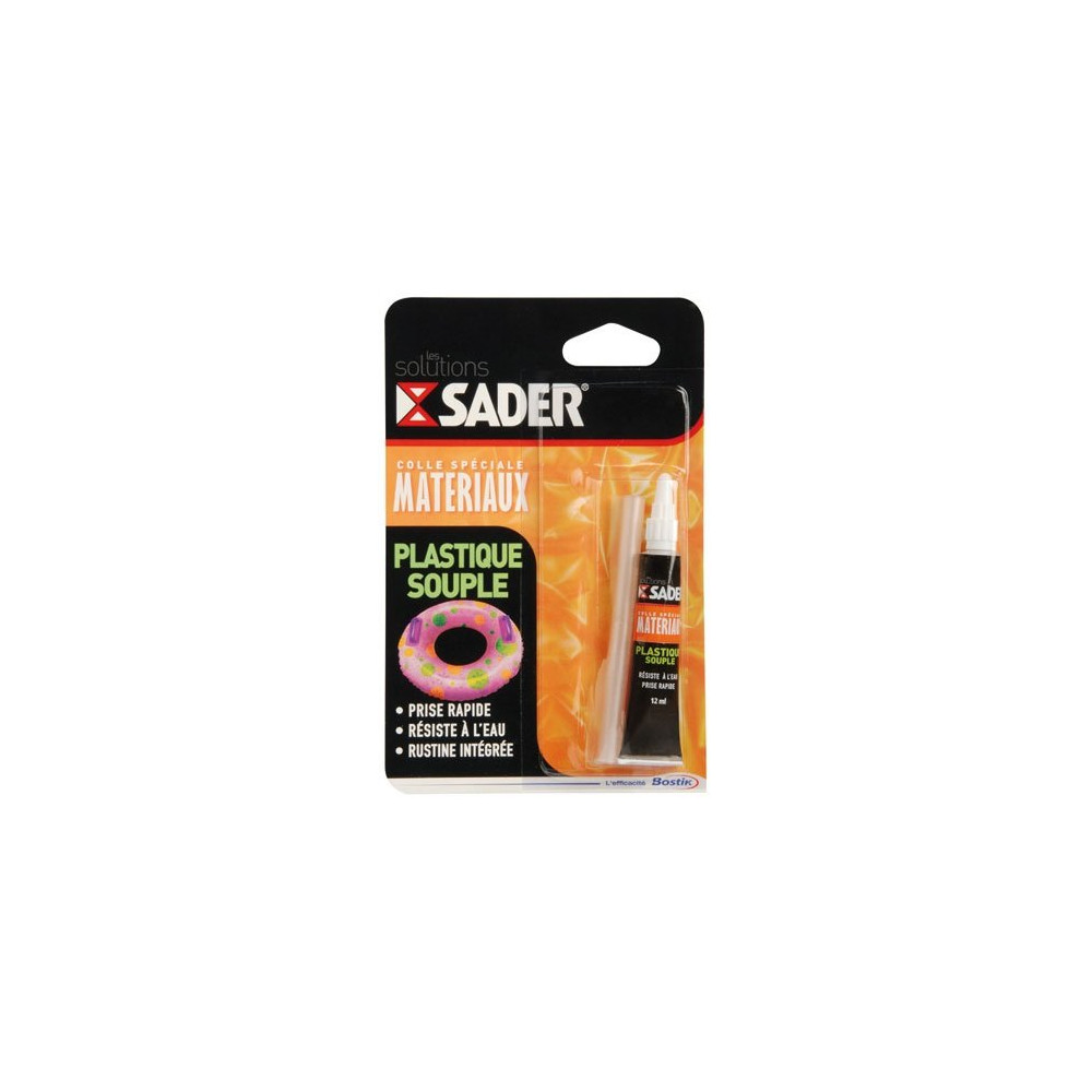 Matelas gonflable percé, bouée fendue ou bâche plastique déchirée ? La colle plastique souple SADER en tube aluminium de 12 ml est la solution de réparation rapide et fiable pour tous vos objets en PVC souple et caoutchouc. Sa prise rapide vous permet de remettre en service vos équipements en un minimum de temps.