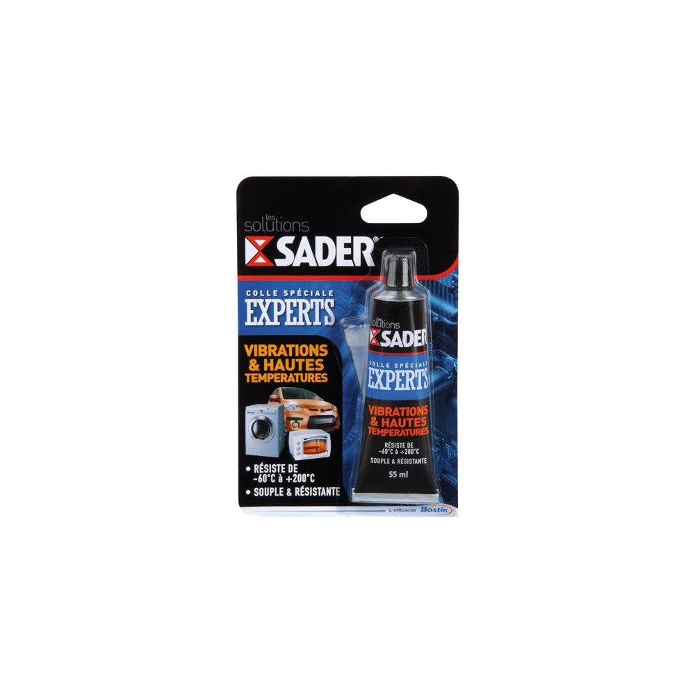 Conçue pour les univers de l'électroménager et de l'automobile, cette colle SADER convient parfaitement pour la réparation ou l'assemblage de pièces soumises à des cycles thermiques ou à des vibrations prolongées : fixation de garnitures, collage de joints, réparation de boîtiers moteur, assemblage de composants sous capot… Une solution professionnelle accessible au grand public.