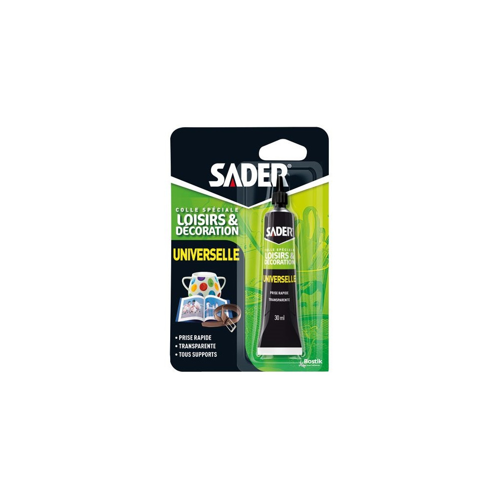 Petite par sa taille, grande par son efficacité : la colle universelle solvantée SADER en format 30 ml est un gel transparent polyvalent conçu pour les loisirs créatifs, la décoration et les réparations du quotidien. Sa formule gel permet une application précise sans coulures, même sur des surfaces verticales ou des pièces délicates à manipuler.