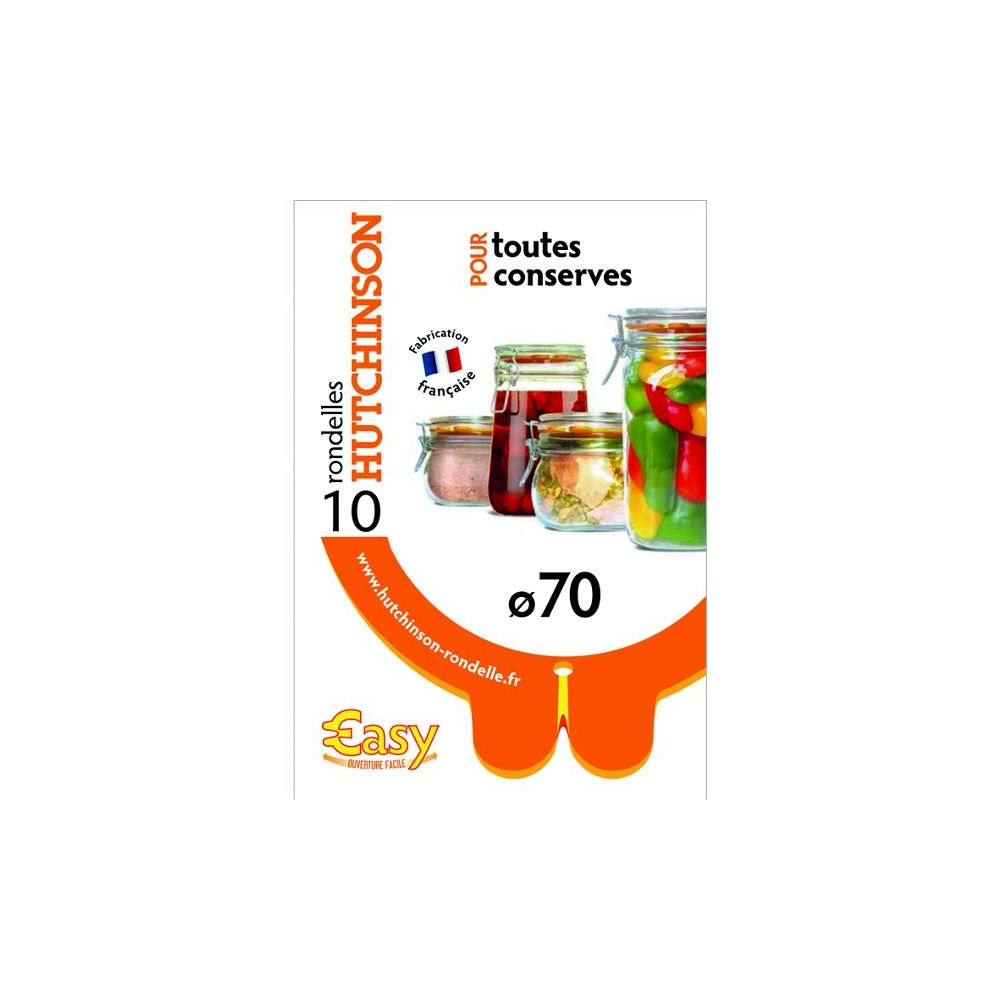 Existe en plusieurs tailles Sachet de 10 rondelles Universelles - Easy - Diamètre 70 mm - Le meilleur joint pour vos bocaux ! - Ces rondelles Le Joint Français vous garantissent le meilleur de la conservation - Spécialiste de l’étanchéité et soucieux de vous apporter le meilleur de l’innovation, Le Joint Français par Hutchinson révolutionne le plaisir de la cuisine en conserves et bocaux - Fabriquées en France et issues d’un savoir-faire unique, ces rondelles caoutchouc sont universelles, étanch