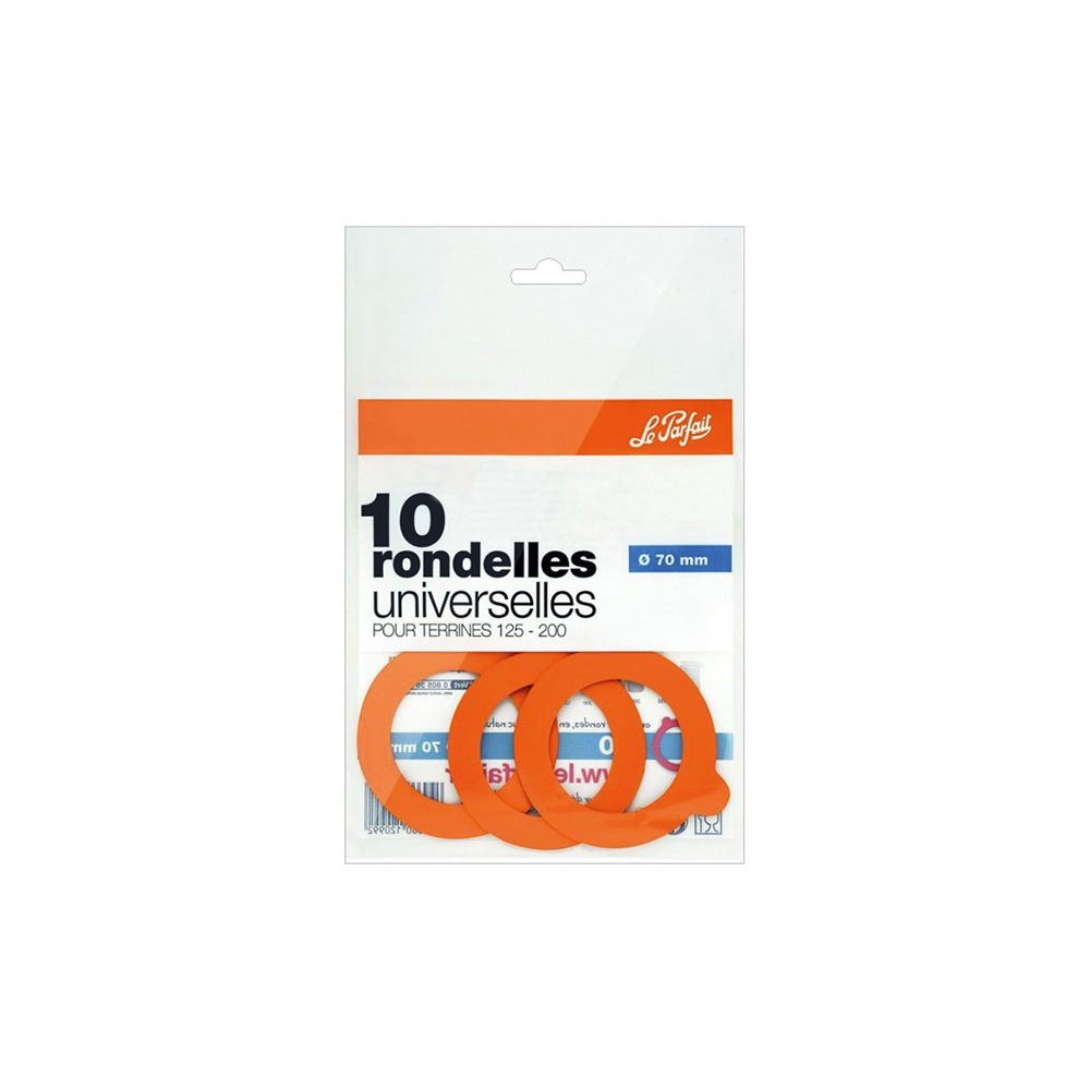 Existe en plusieurs tailles Sachet 10 rondelles universelles 70 mm - Super - Fabriquées au Sri Lanka, les rondelles Le Parfait Super sont en caoutchouc 100% naturel - Elles présentent l’avantage d’être universelles, c’est-à-dire de convenir parfaitement pour des préparations à base de fruits, légumes, viandes, poissons et plats cuisinés - Tous les sachets de rondelles sont disponibles en sachets de 10 - Convient pour les bocaux 0.25 L et pour les terrines 125 g, 200 g et 275 g.