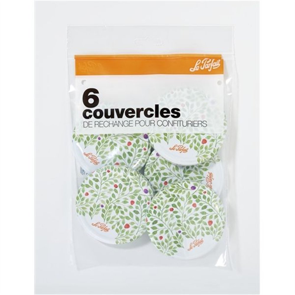 Donnez une seconde vie à vos pots de confiture avec le lot de 6 couvercles Le Parfait pour confituriers. Reconnaissables entre tous grâce à leur design original et soigné, ces couvercles sont la signature d'une marque française emblématique de la conservation maison. Ils s'adaptent parfaitement aux confituriers de la gamme Le Parfait pour une conservation optimale de toutes vos préparations sucrées.
